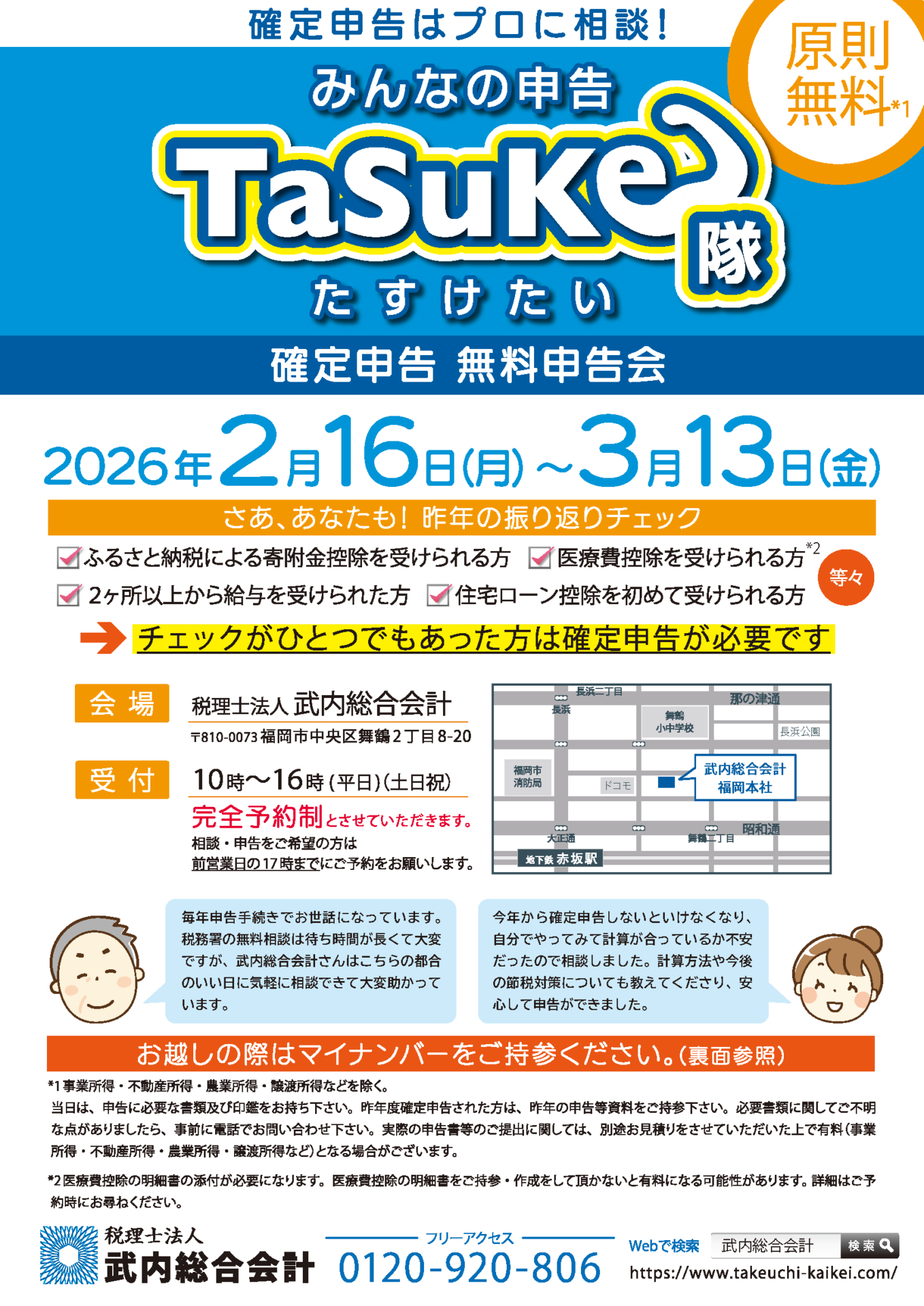 恒例の無料申告会「みんなの申告TaSuKe隊」を今年も開催いたします。